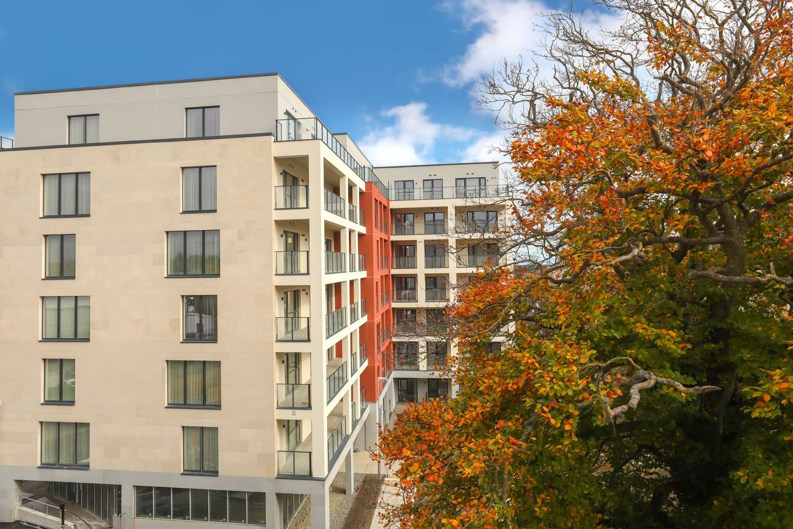 The scheme comprises 203 A2-rated homes across four blocks, ranging from studios to three-bedroom apartments, all arranged around a beautifully landscaped central courtyard with basement car parking.