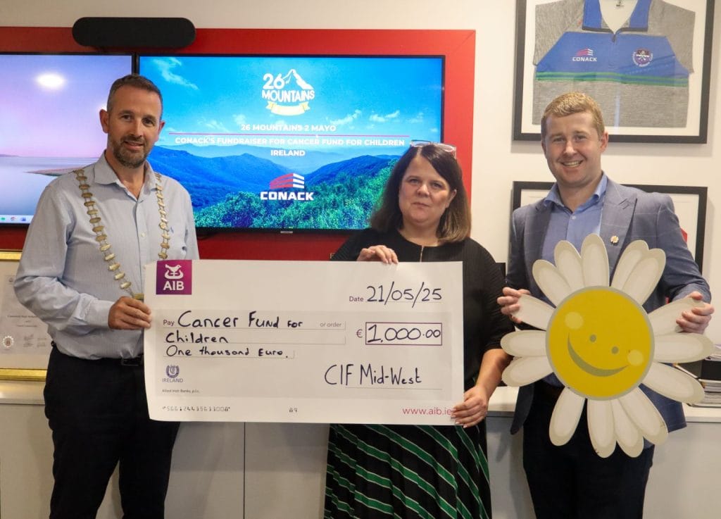 Conack is pleased to present a cheque to Cancer Fund for Children for €1,000 as part of our fundraising efforts for the 26 Mountains 2 Mayo event!